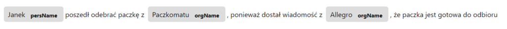 dokument = nlp(u"Janek poszedł odebrać paczkę z Paczkomatu, ponieważ dostał wiadomość z Allegro, że paczka jest gotowa do odbioru")