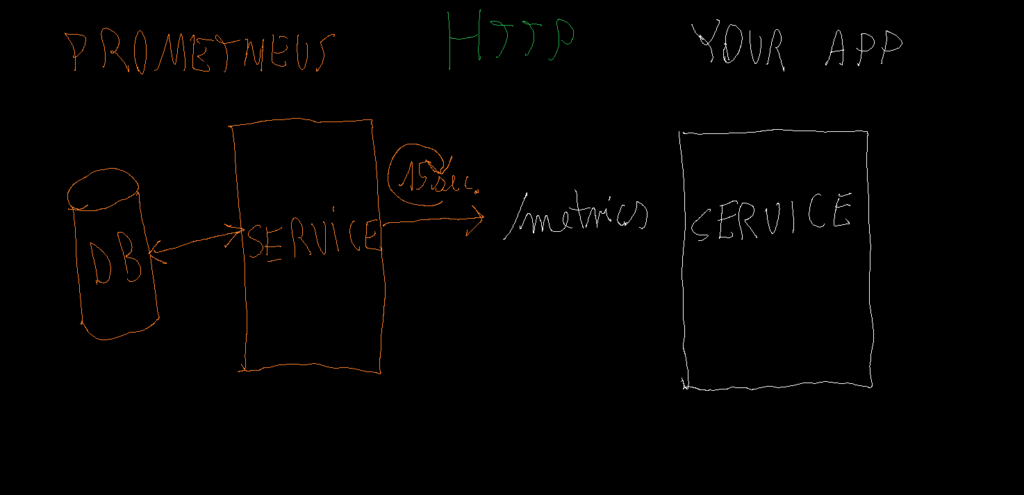 As depicted in the picture the idea is that your application exposes /metrics endpoint where Prometheus reads from time to time (usually every 15 seconds) provided metrics which must be in valid format. Here is a sample content: